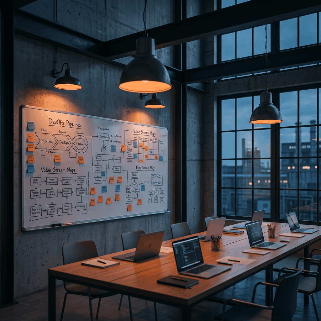 Value-Stream-Mapping macht sichtbar, was sonst verborgen bleibt: Wo entstehen Wartezeiten? Wo passieren Übergaben? Wo liegen manuelle Schritte, die automatisiert werden könnten? Wir moderieren Value-Stream-Mapping-Workshops mit Ihren Teams und identifizieren die größten Hebel für kürzere Lead-Times, höhere Deployment-Frequenz und niedrigere Change-Failure-Rates.